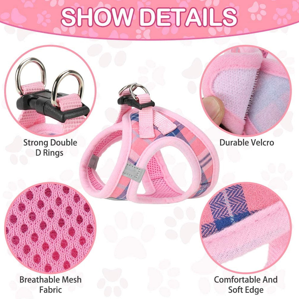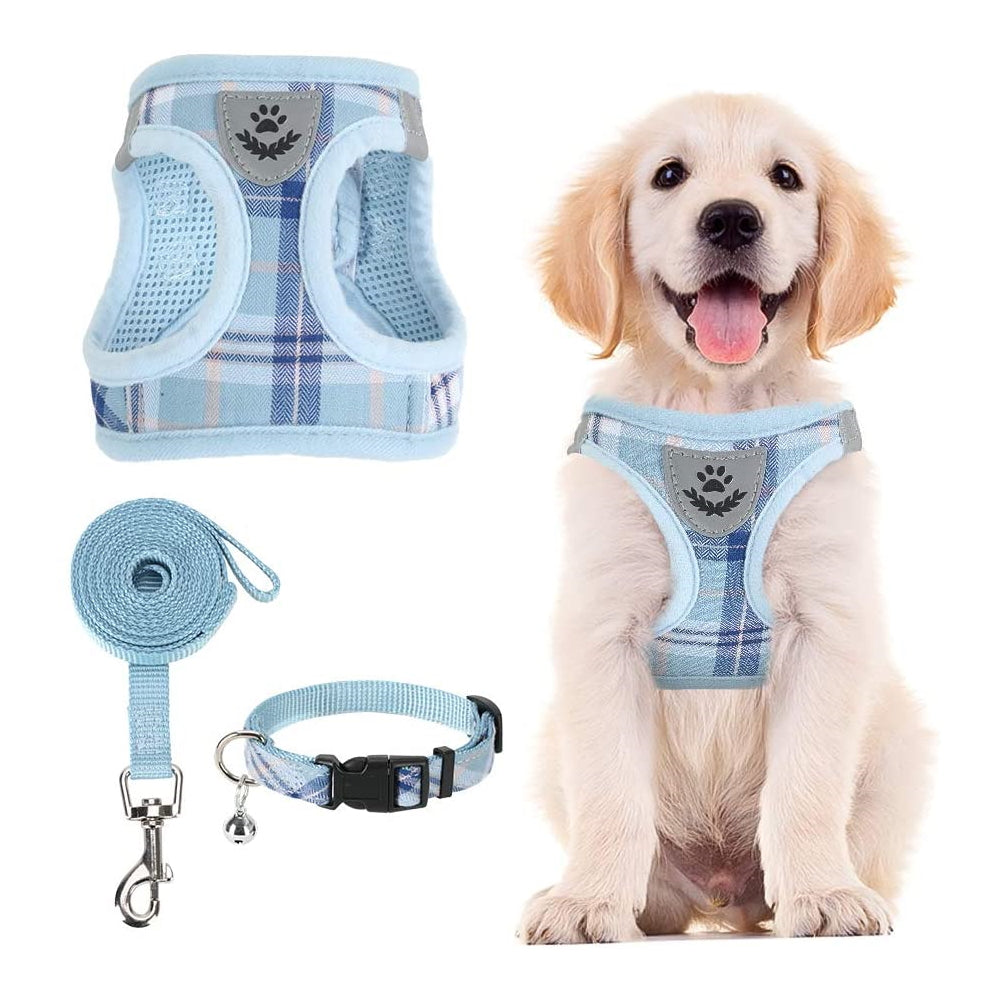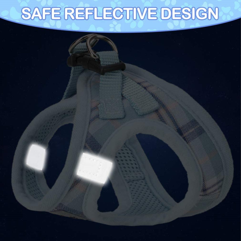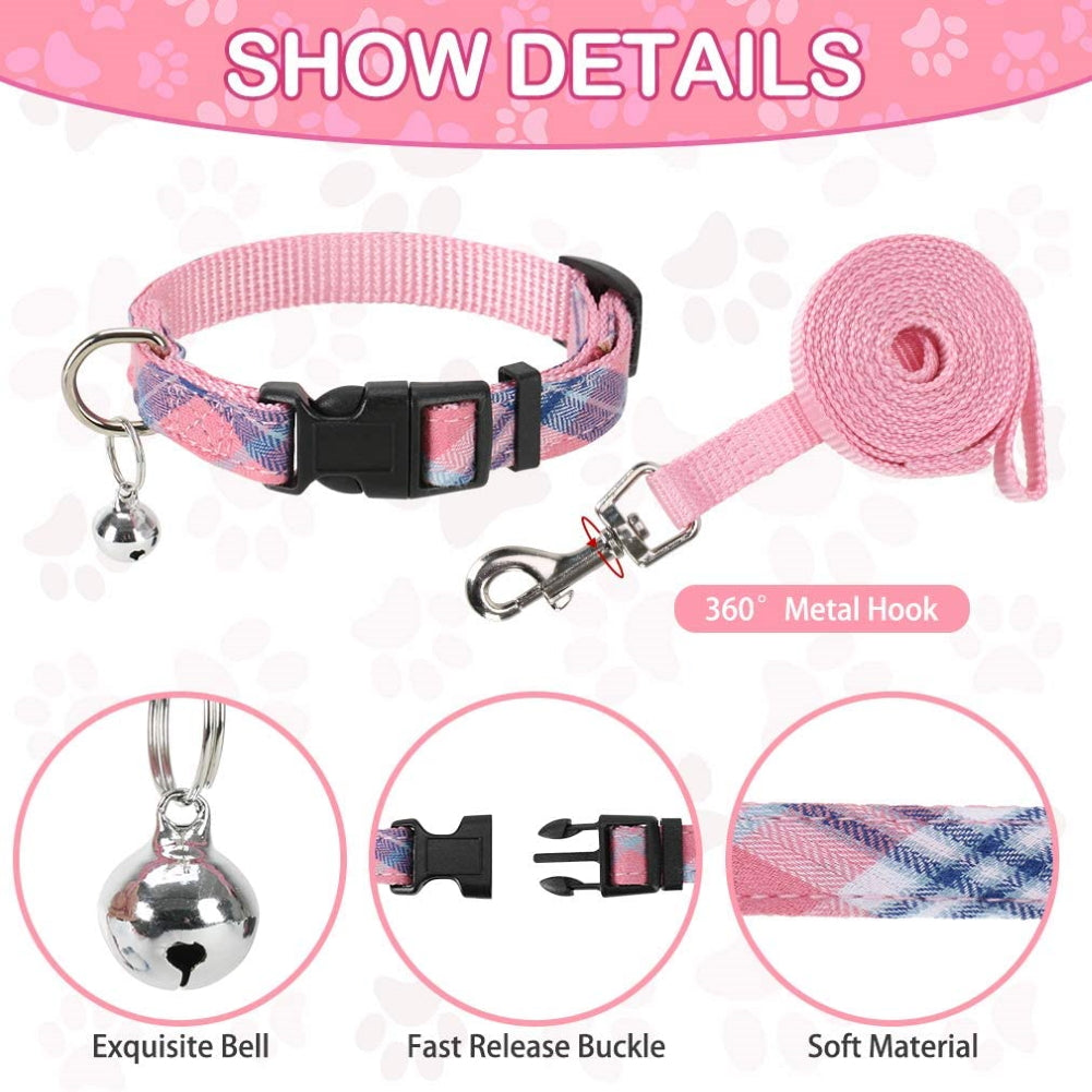 Adjustable Pet Harness Collar and Leash Set with Classic Plaid Pattern