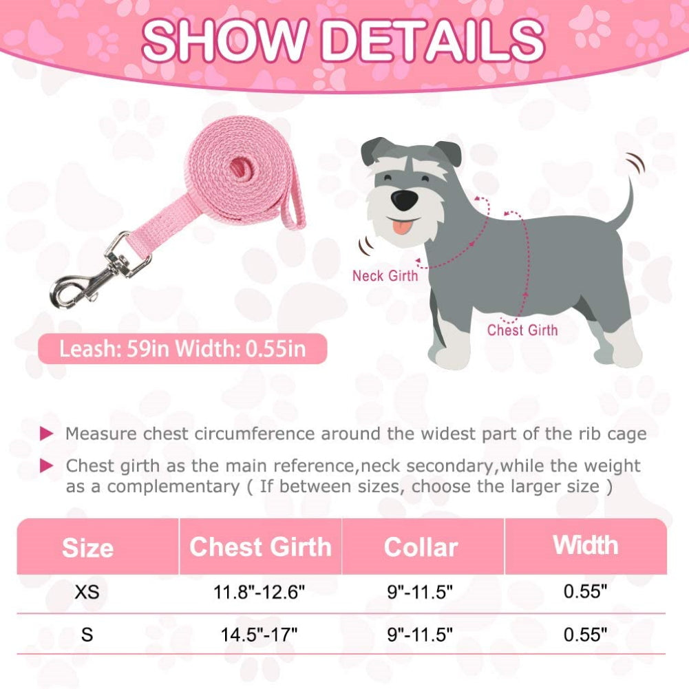 Size: There 4 size you can choose XS S M L.Please measure your pet's breast as well as neck girth prior to purchase.